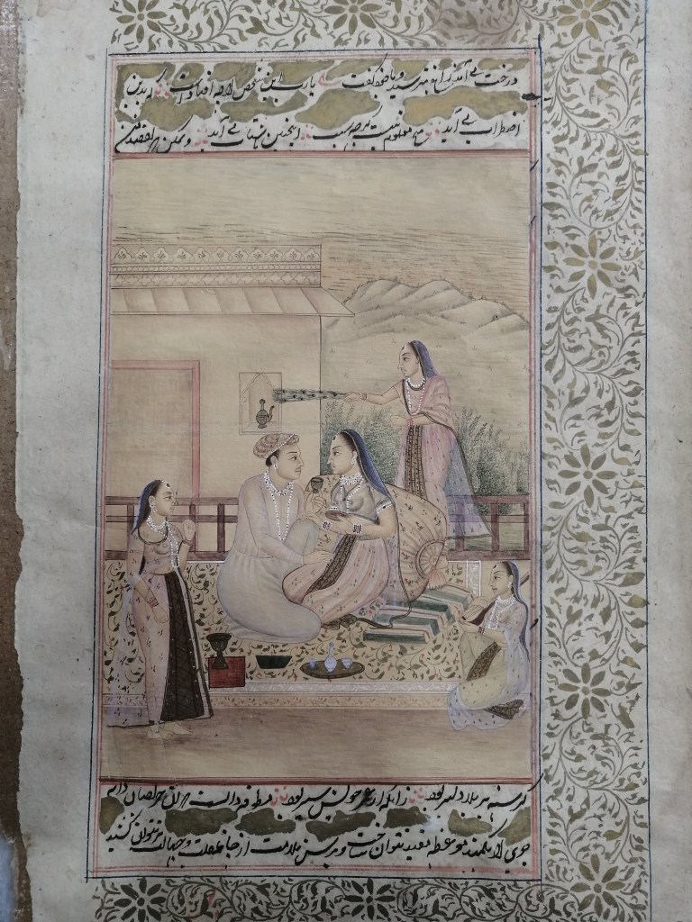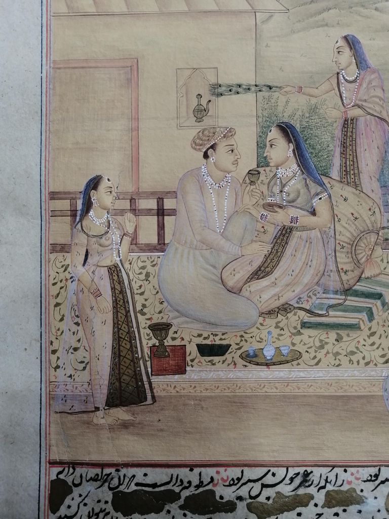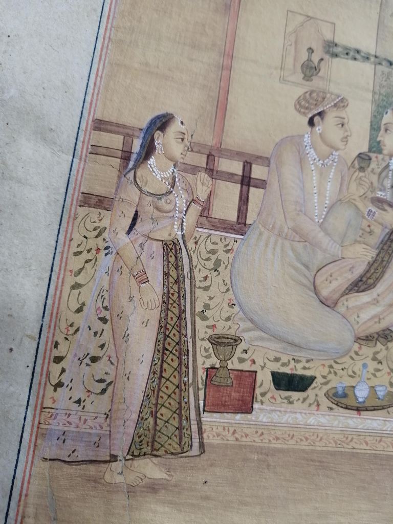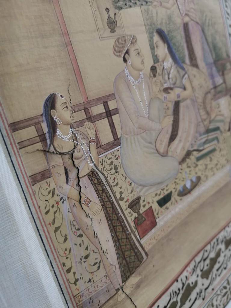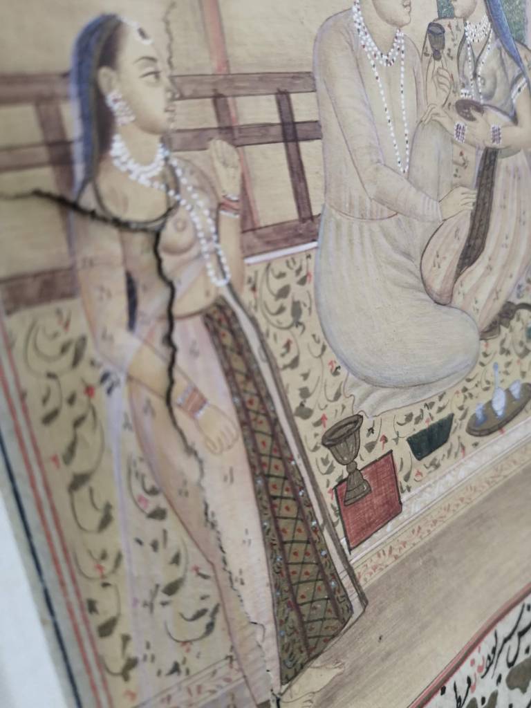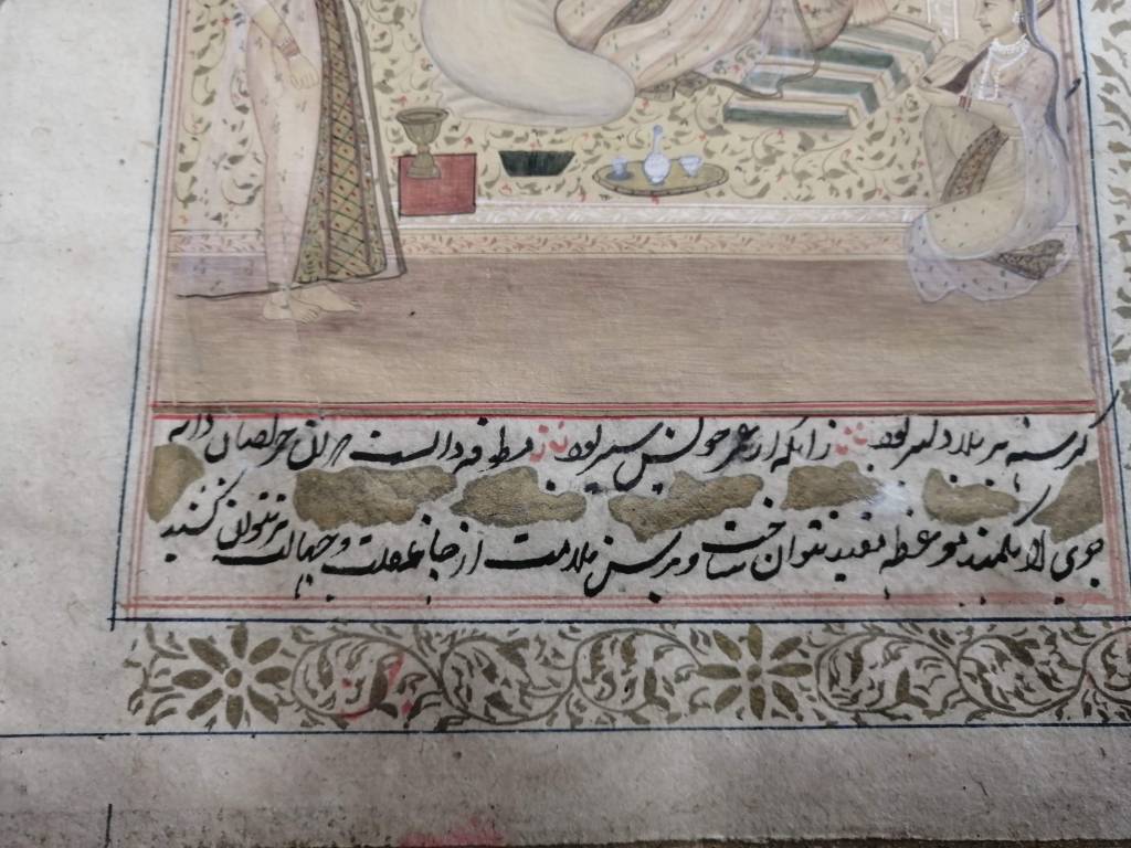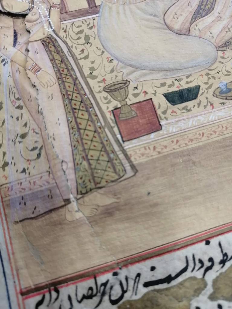 Conservation work of an illuminated page of an Islamic manuscript.